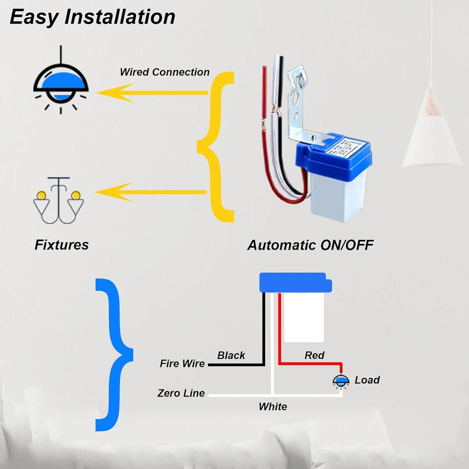 Durable 220V Auto Day/Night Photocell Sensor Switch with 10A load. Best Quality, Waterproof, energy-saving, easy to install. Ideal for street lamps, corridors & outdoor lights.